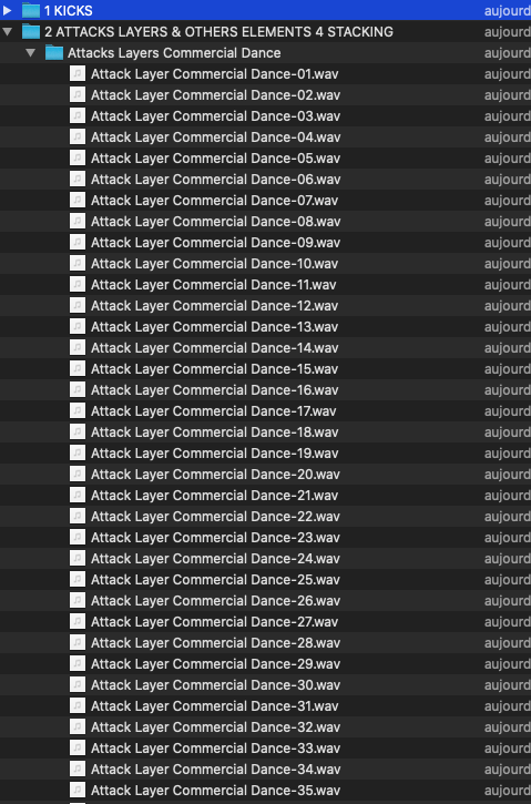 2821 Attacks layers & others elements for stacking. (Snare, Perc, Fx, Hat, Ride, Clap, Real Perc, Foley, etc…)